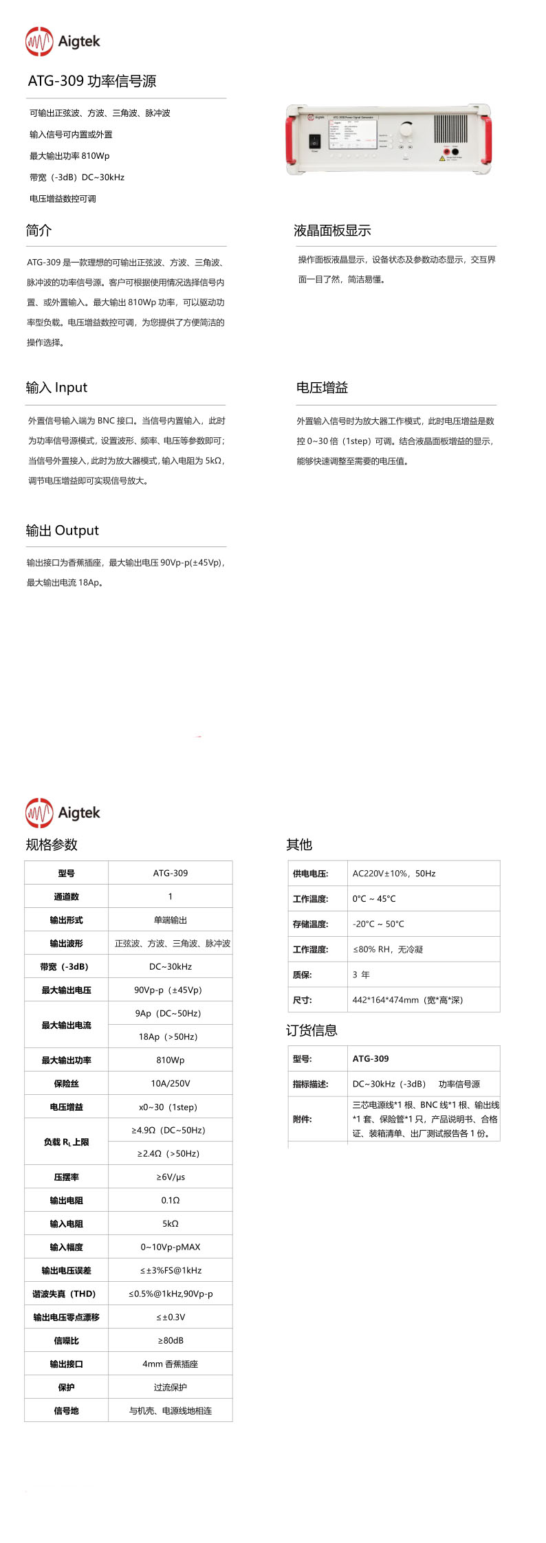 产品名称:Aigtek安泰/ATG-309/功率信号源